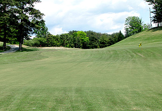 ティーショットはセンターよりやや右サイドが狙い目である。左サイドは法面が続いているのでセカンドショットが難しくなる。